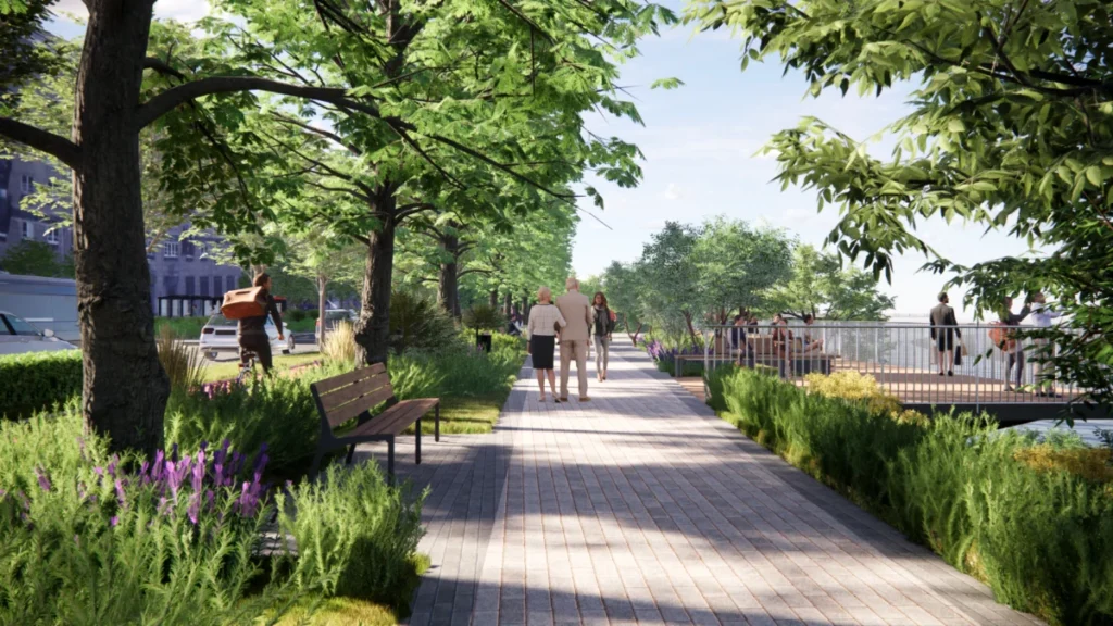 Naujieji pėsčiųjų takai sujungs miesto centrą su Neries krantinėmis. Platūs ir saugūs takai, vietomis atskirti želdinių juostomis nuo gatvės eismo, kvies vilniečius vaikščioti, sportuoti ar tiesiog pasimėgauti upės vaizdais. Ties sankryžomis su J. Tumo–Vaižganto, A. Jakšto ir A. Vienuolio gatvėmis bus įrengti pandusai ir laiptai, kad pėstieji lengvai pasiektų krantinę ir naujas poilsio erdves.
